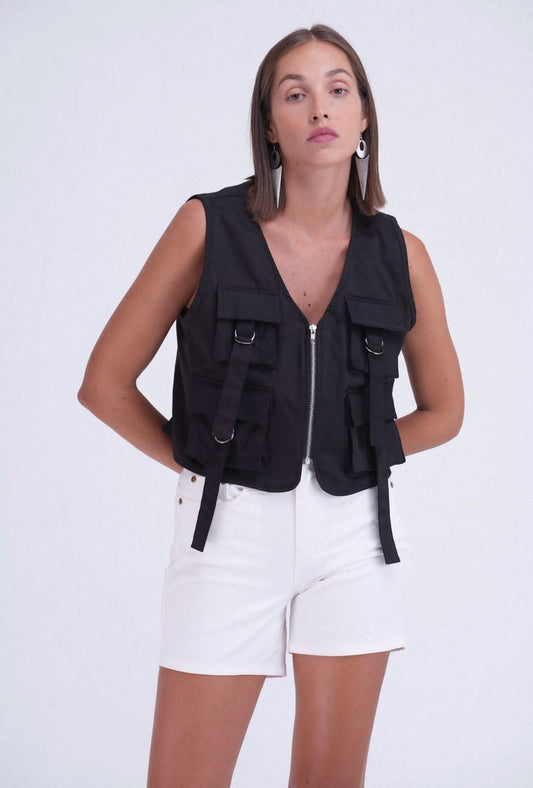 Leather Zipper Cami Top